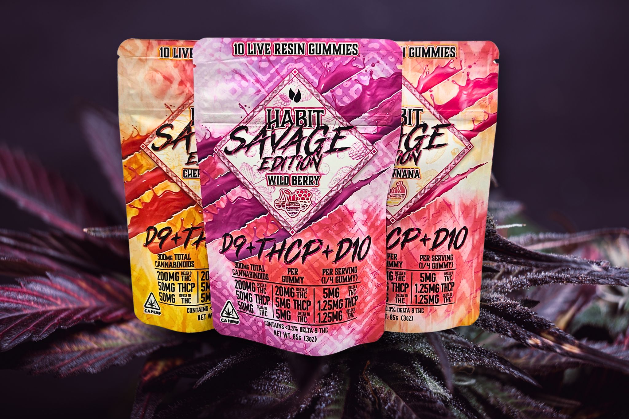 Cherry Pineapple, Extra Strength Midnight Cherry, High Spectrum Sunset Strawberry, Strawnana, Wild Berry
